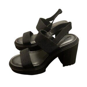 The Cool Planet by Steve Madden Women's Size 10M Stem Lug-Sole City Sandals in Black offer a stylish and sustainable option for women looking for a high heel sandal. Featuring a pull-on closure and block heel, these sandals are perfect for travel and casual occasions during the summer, fall, and spring seasons. Made with recycled materials and a synthetic outsole, these strappy sandals are designed to be fun, modern, and environmentally friendly. The black color and solid pattern make them versatile for various outfits, while the durable construction ensures long-lasting wear.