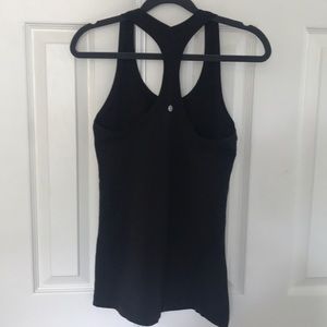 Lululemon Cool Racerback tank in black. I believe it is a size 8, it is the same size as the coral one I am selling which is an 8. EUC