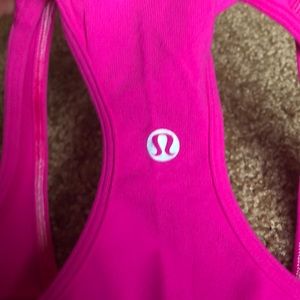 Bright pink Cool Racerback, size 4, custom made by lulu for Southern California regional event, Runhundred. Runhundred is written in lime green. Fun, bright color top. Only worn twice.