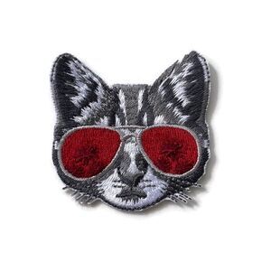 Cool Shades Grey Tabby Cat Head Embroidered Patch