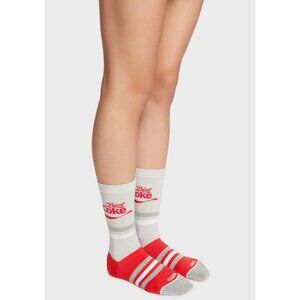 These Cool Socks crew socks feature a Diet Coke design in silver and red stripe patterns. Made for sizes 8-12, these cozy socks are durable, stylish, and machine washable.