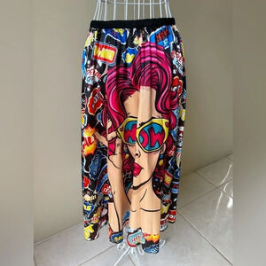Cool face midi flare skirt Pleated SZ XS-M unbranded novelty print disco pin up