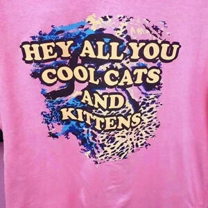 Such a fun tshirt. Bright pink with Hey All You Cool Cats and Kittens saying.