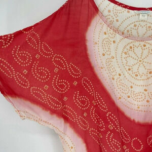 CoolChange Blouse Womens Sz SM Red Cream Paisley Dolman Sleeve Elastic Hem Tunic