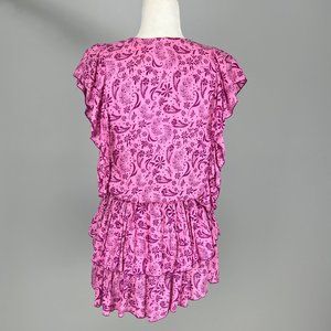 Coolchange Quinn Womens Ruffled Tunic Dress Swim Cover Purple Pink Floral size S