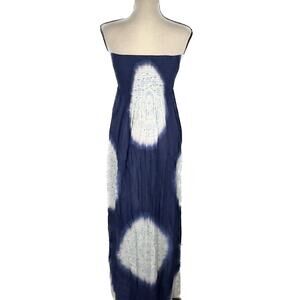 Coolchange Strapless Smocked Maxi Dress Blue White Women's Size Medium