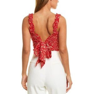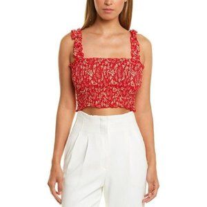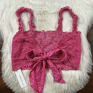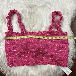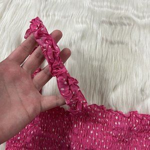 Coolchange Women's Size Large Pink Polka Dot Sleeveless Smocked Daria Cropped Top, Tie Back, 100% Rayon