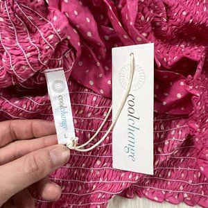 Coolchange Women's Size Large Pink Polka Dot Smocked Daria Top Tie Back