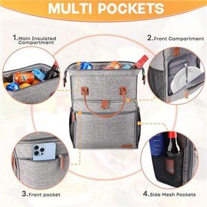 🧿MULTI-POCKET -- The insulated cooler bag has an insulated main compartment for cooling drinks and keeping food fresh. A wide-open front zipper pocket for your cutlery, bottle opener, and other accessories. An additional front zipper pocket holds your phone, keys, wallet, and travel accessories.The mesh pockets on both sides can hold some red wine, umbrellas and water bottles. Meet your travel needs.