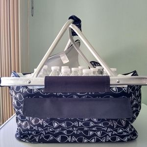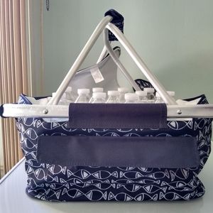Cooler chest with handles with zipper can carry 18 water bottles and cooler bag with zipper closure very large open space also can fit upto 12 soda cans item has tag in original packaging very well made you are all ready for the park picnic