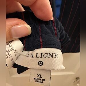 These are gorgeous pants. From the La Ligne x Target release, navy wide leg W pockets!!!!, red pinstrip and red & blue tuxedo stripe!