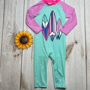 Coolibar 18-24 Months Baby Beach Surfboard Striped Swimsuit UPF 50+ One-Piece