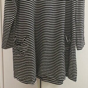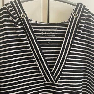 Coolibar Catalina Beach CoverUp Swim Dress UPF 50+ Black & White Striped Hood XL