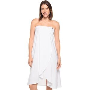 This beach wrap is a resort-ready essential! Style it multiple ways, as a tie-waist skirt, halter or strapless dress, all with a beautiful feather-light drape.