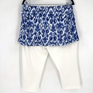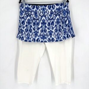 Coolibar Kahula Skirted Swim Capri UPF Swim Bottom Capris Size XL Blue & White