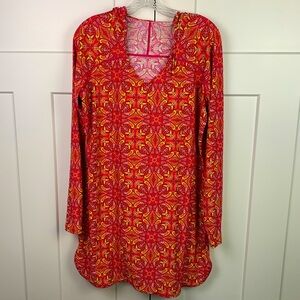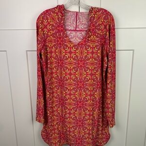 Coolibar MEDIUM Women's Seacoast Swim Cover-Up Dress Pink Paisley Hooded UPF 50+