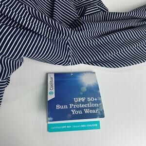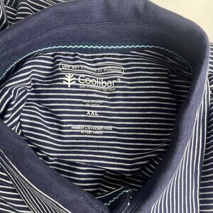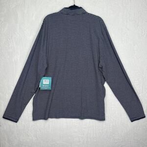 Coolibar Men's Merrit Long Sleeve Pocket Polo Shirt Blue and White Striped Sun Protective UPF 50+ NWT