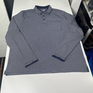 Coolibar Mens Merrit Long Sleeve Pocket Polo Shirt Blue White Striped UPF50 NWT