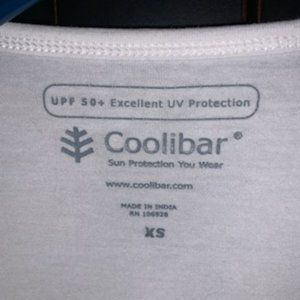 This gently loved long sleeve white sun protection top from Coolibar has a beautiful colorful mandala pattern on the front.