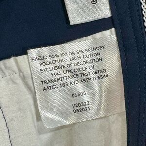 Excellent condition Coolibar Navy Flat Front Performance Pants. UPF 50+. Size 34. 95% nylon/5% spandex. No stains or damage. From smoke free pet free home. Measurements laying flat: