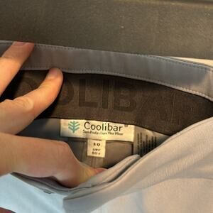Gently Used Coolibar Shorts. These are a women's 10. Light gray / silver color throughout. Two front and one back pocket. Lightweight and sporty feel to them. SPF 50+ fabric that is meant to be in the sun. Shell is 100% polyester. Perfect for golf, tennis, or any number of outdoor sunny day activities!