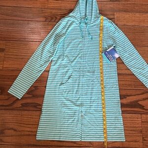 Coolibar Sun Protective Aqua Striped Hooded Zip Up Cover Up Size XS New With Tag