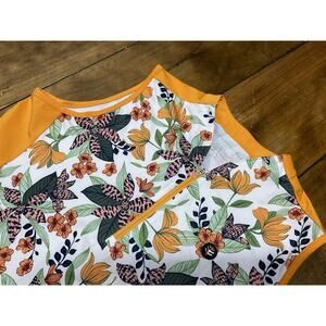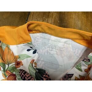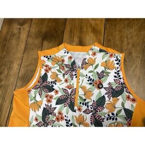 Coolibar UPF 50+ Backspin Golf Dress Zip Up Neck Sleeveless Floral Orange Medium