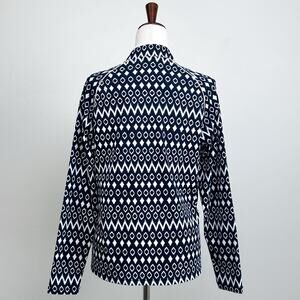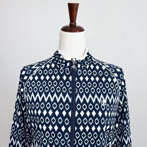 Size Large Coolibar Jacket. Navy blue patterned fabric. UPF 50 sun protection. High mock neck for maximum sun coverage. Great condition!