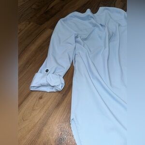 ☀️ Stay stylish and sun-safe with this Coolibar UPF 50+ tunic top! Crafted from lightweight, breathable fabric, it offers superior sun protection while keeping you comfortable. The pale blue shade pairs easily with any wardrobe. Features long sleeves, a v-neck with button detail, one chest pocket, convenient zipping side pockets, and a curved high-low hem. Excellent pre-owned condition with no rips, stains, or signs of wear. Perfect for hiking, travel, beach days, or everyday wear. Smoke-free home. Open to reasonable offers! 💙