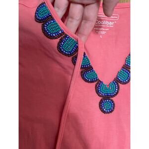 Coolibar Women's L Pink Long Sleeve V Neck UPF 50+ Sun Protection Beaded Shirt