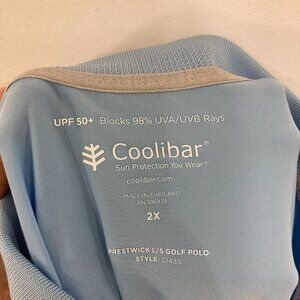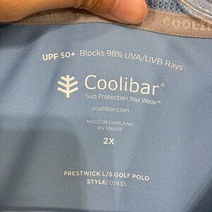 Coolibar size 2X Light Blue Men's Prestwick Long Sleeve Golf Polo UPF 50 Active