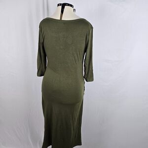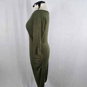 Coolmee Dress Women's L Green Midi Long Sleeve Buttons Long Sleeve Round Neck