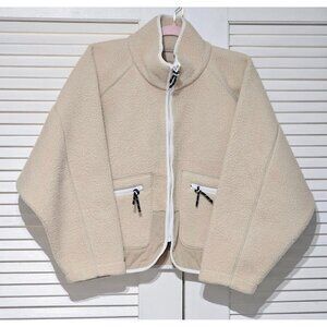 This cozy sherpa jacket from Cools Club offers both style and practicality, featuring a chic beige design and functional zip-up pockets. With its high neck and durable polyester blend, it ensures warmth and comfort for brisk days. An ideal versatile piece for layering, it effortlessly complements various casual outfits.