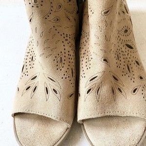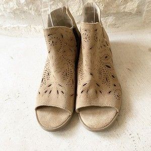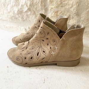 Coolway Peep Toe Sandals SZ 37 US 6.5 Brown Suede Perforated Shoes Spain