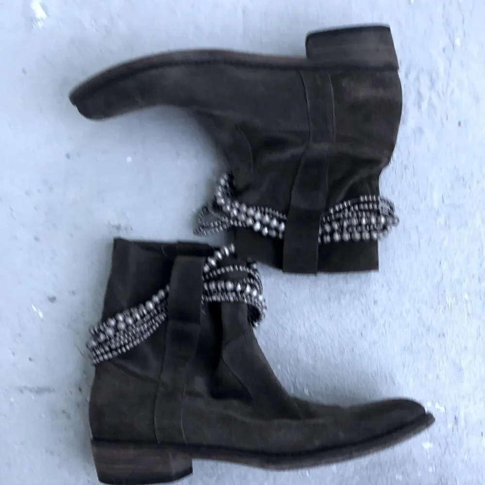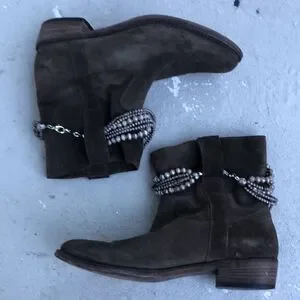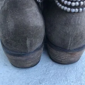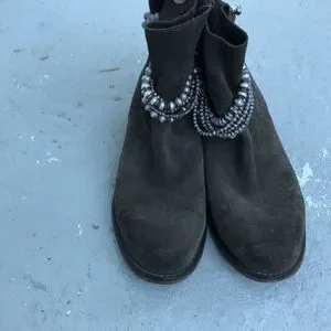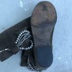 Chocolate brown suede boots that have a khaki hue to them. In good condition. Check out the pictures.Made in Italy