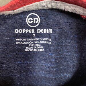 This delightful set of Copper Denim t-shirts offers a vibrant mix of colors and comfort. Each shirt features a classic henley style with a crew neck and short sleeves, providing a relaxed yet stylish fit for young boys. The blend of cotton and polyester ensures durability and softness, making these shirts a practical yet fashionable choice for everyday wear. With versatile colors, these shirts can easily be paired with various bottoms, offering endless styling possibilities.