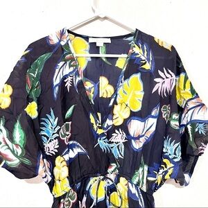 Cooper & Ella Anthro Women's Flowy Navy Tropical print Kaftan maxi dress size S