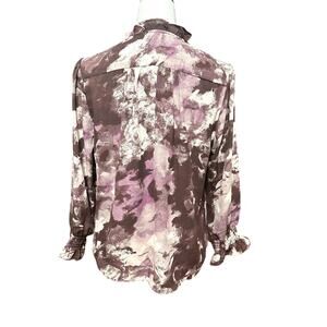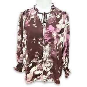 Cooper & Ella Blouse Ruffle Neckline Long Sleeve Unique Abstract Purple W S NWT
