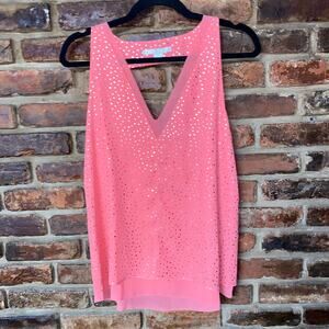 Cooper & Ella Coral Pink Gold Polka Dot Keyhole Sleeveless Blouse Women's Small
