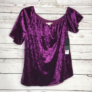 Cooper & Ella Linnea Velvet Off the Shoulder Top Purple XS