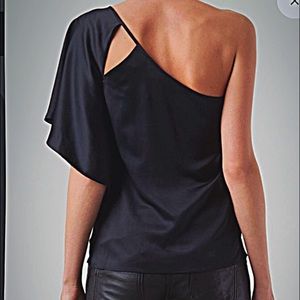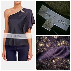 Cooper & Ella One-Shoulder Silk Top NEW! Size MED but listing SM. I'm a 00-2 & it's fits perfect. I took the tag off but never wore it. I don't go out anymore; most of my items 4 sale are new or barely worn night life attire. Top is absolutely stunning-the material feels like satin on your skin!