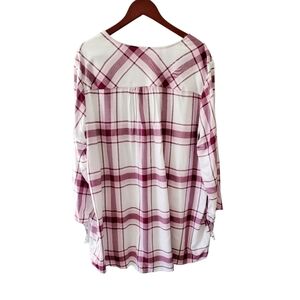 Cooper & Ella Purple and Ivory Plaid V Neck Tunic Style Top NWOT Plus Size