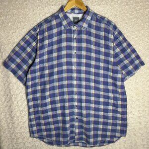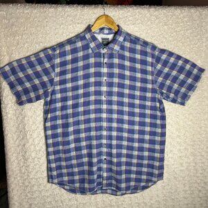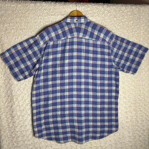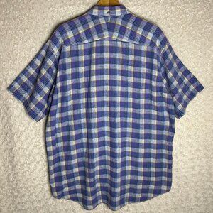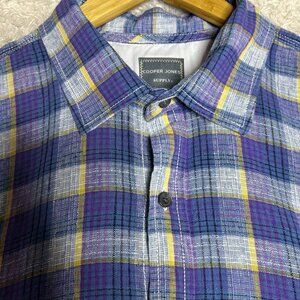 Cooper Jones Supply Men's Extra Large (XL) Short Sleeve Plaid Button Up Dress Shirt Blue Purple Yellow Made in Thailand. Garment is in very nice overall condition. Looks new or rarely and lightly worn. No rips, no stains, no snags, no pilling, no sacking out of the fabric (or elastic or leather) Noted. Open to reasonable offers.