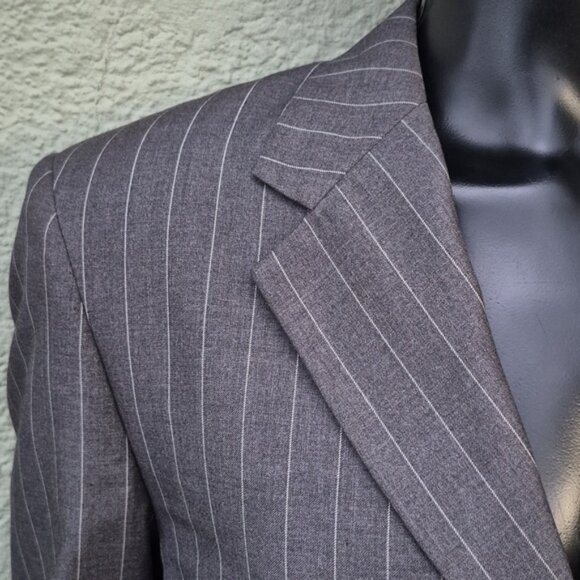 Elevate your style with this sophisticated charcoal pinstripe blazer. Perfect for business or formal occasions, it adds a refined touch to your ensemble.