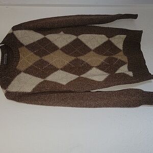Classic argyle sweater, featuring a timeless diamond pattern in earthy brown and beige tones. This knit pullover offers a comfortable fit and a traditional aesthetic. Perfect for layering during cooler months, it adds a touch of sophistication to any outfit. Ideal for casual weekend outings or cozy evenings by the fireplace.