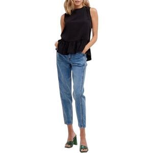 Cooper St Navy Blue White Polka Dot A-Line Ruffle Hem Sleeveless Blouse Sz L NWT is new with tags in original packaging