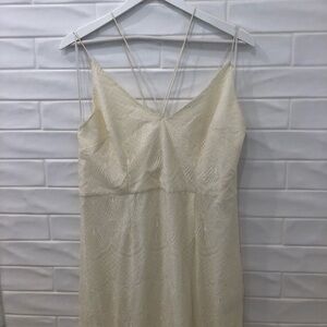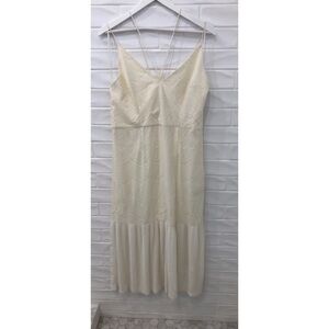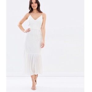 Simple and bohemian, this lace midi dress makes an entrance with a strappy neckline and a pleated hem.