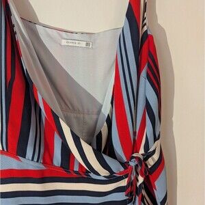Cooper St Red Blue Striped Genuine Wrap Dress