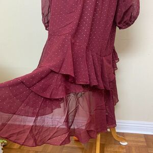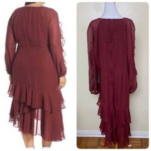 Cooper St Chiffon Dress Sz 22 Texture Dot & Ruffle Red White Asymmetrical