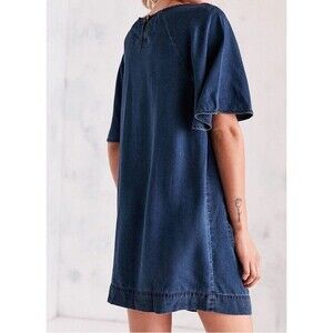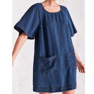 Cooperative Chambray Denim Mini Dress Women Medium Flutter Sleeve Pocket Scoop